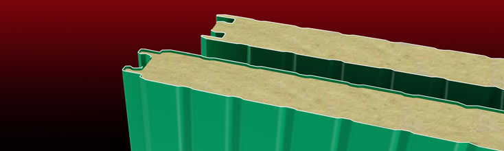 Pannello parete metallico in lana di roccia con giunto nascosto.